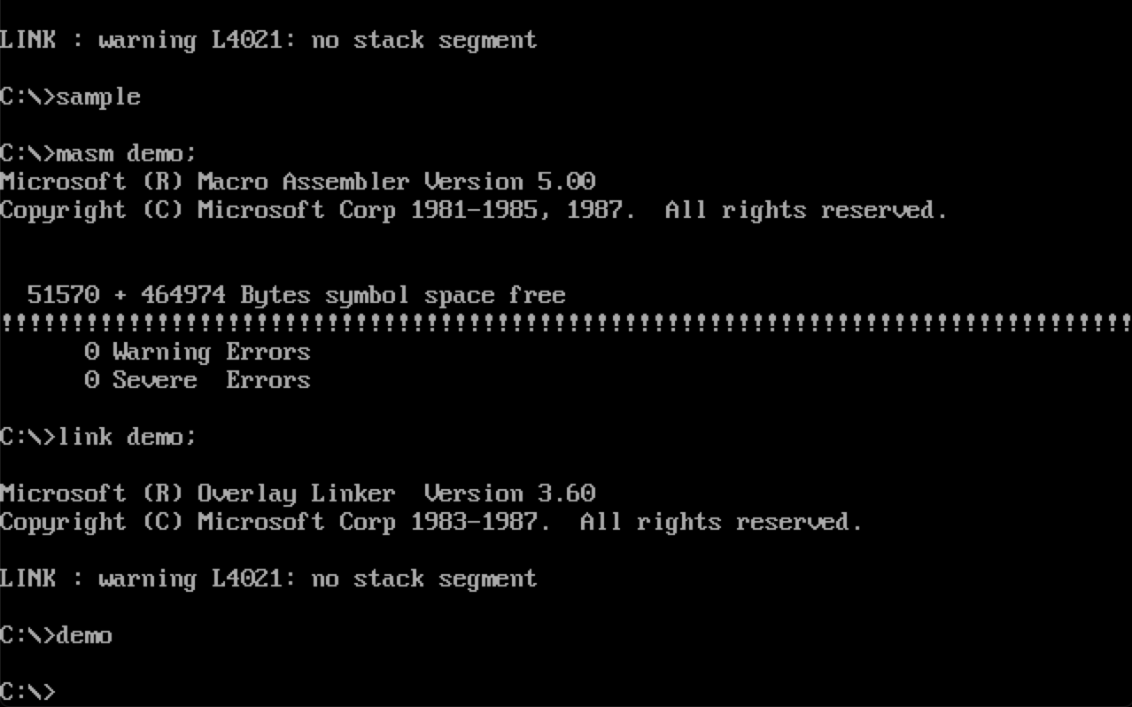 我们将上述代码保存为sample.asm然后编译连接。然后执行sample.exe: