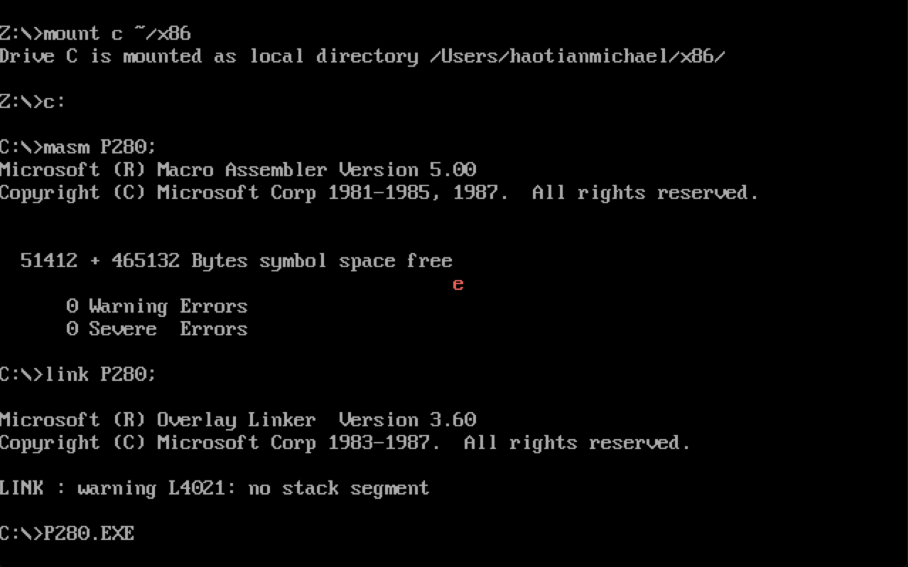 实验有意思的地方在于:因为键盘上所有的键都会触发int 9h中断,需要在保证其他键无效的情况下,Esc键触发中断————就相当于出现了两个中断例程,两个中断向量。更有趣的是需要这两个中断同时有效,在一个int 9h中断下!