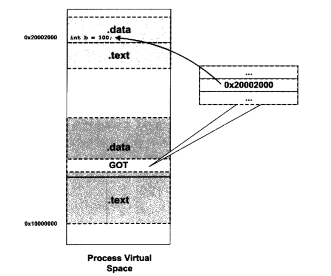 链接器在装载模块的时候会查找每个变量所在的地址,然后填充GOT中的各个项,以确保每个指针所指向的地址正确。GOT在数据段所以可被修改。总结一下:
